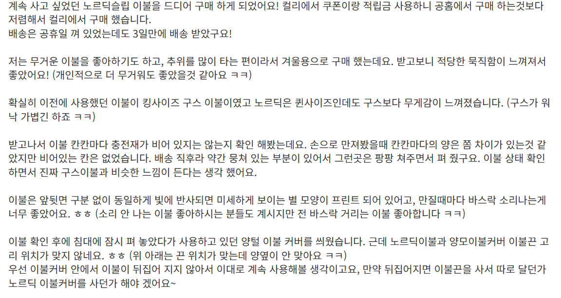 "컬리의 노르딕 슬립 제품으로 인생 최고의 수면을 경험했어요!"