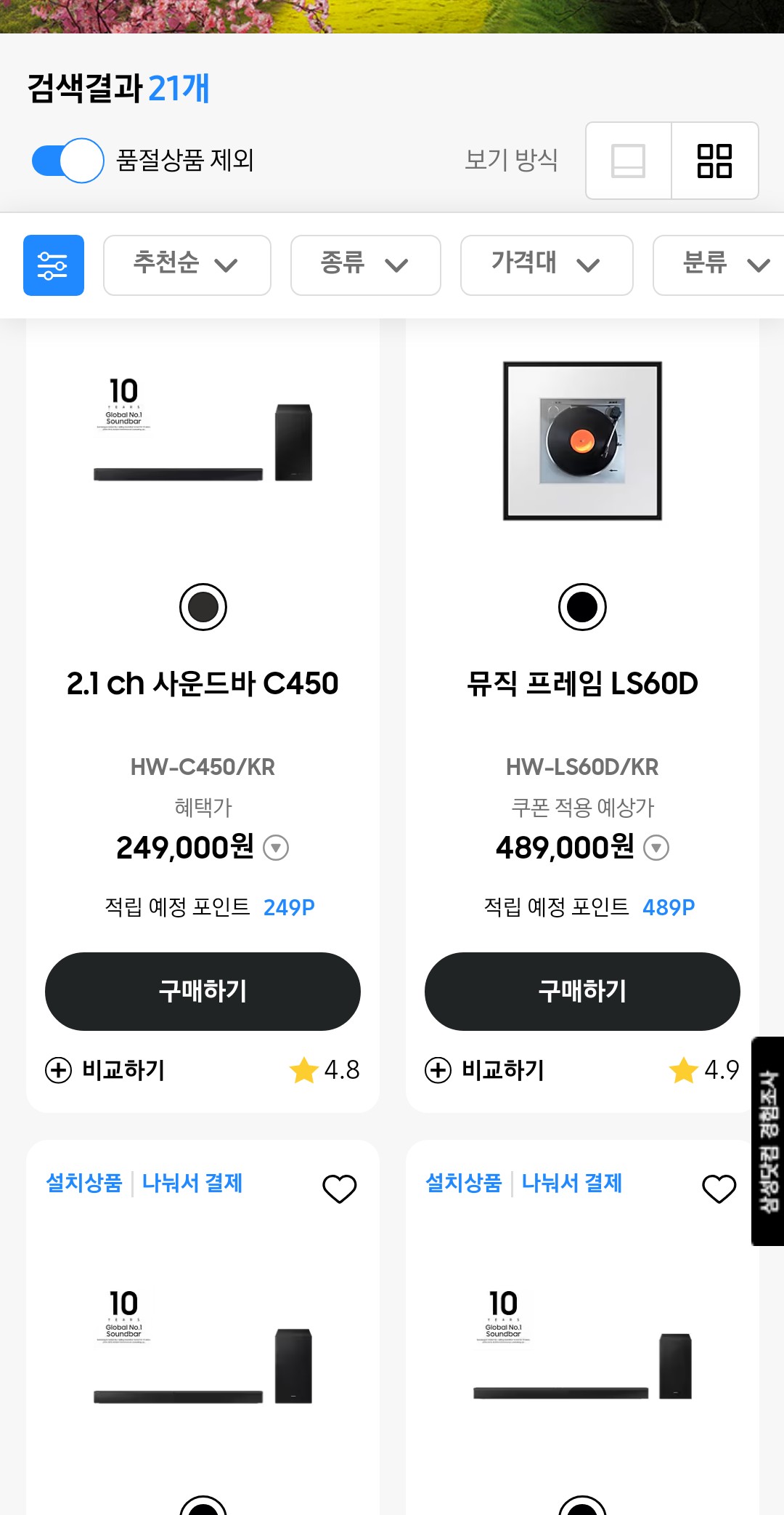 - 다양한 크기와 가격대